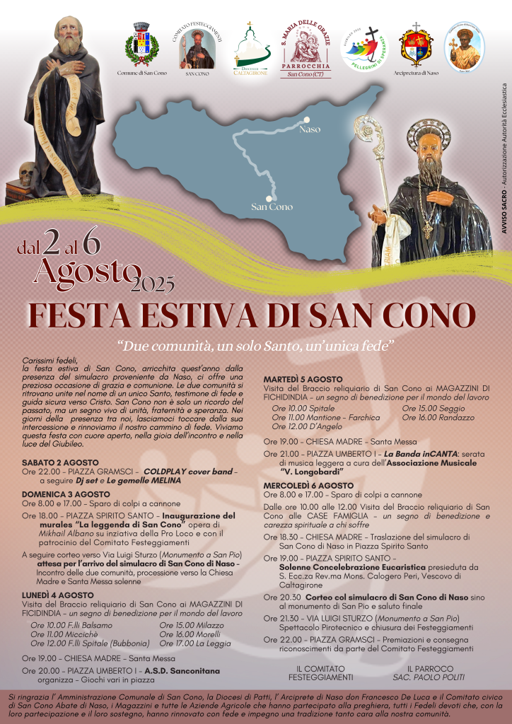 Due doni all’inizio dell’anno pastorale: l’Assemblea Pastorale Diocesana con la presenza del Card. M. Grech e l’Ordinazione diaconale di Alessandro Di Martino.Due doni all’inizio dell’anno pastorale: l’Assemblea Pastorale Diocesana con la presenza del Card. M. Grech e l’Ordinazione diaconale di Alessandro Di Martino.27 Ottobre 2025Zona Industriale di Caltagirone: dal Vescovo Peri un appello ascoltatoZona Industriale di Caltagirone: dal Vescovo Peri un appello ascoltato6 Ottobre 2025Quattro nuovi diaconi permanenti per la Chiesa calatina: l’ordinazione venerdì 12 settembre 2025 nella festa della fondazione della DiocesiQuattro nuovi diaconi permanenti per la Chiesa calatina: l’ordinazione venerdì 12 settembre 2025 nella festa della fondazione della Diocesi9 Settembre 2025 Terza Assemblea Sinodale e Giubileo delle Equipe sinodali La scorsa settimana, dal 24 al 26 ottobre, a Roma si è celebrato il Giubileo… “Ricevete lo Spirito Santo” – Lettera del Vescovo ai Catechisti dei Cresimandi “Ricevete lo Spirito Santo” Lettera del Vescovo ai Catechisti dei Cresimandi… Convocazione dell’Assemblea Pastorale Prot. n. 44/2025 Ai rev. Presbiteri, Diaconi, Religiosi e Religiose,… Rosario per la pace in comunione con Papa Leone XIV e ricordando l’apertura del Concilio Vaticano II – 11 ottobre «Se ci amiamo così, sul fondamento di Cristo, che è “l’alfa e l’omega”, “il principio… La voce della Chiesa al fianco degli imprenditori calatini CALTAGIRONE – La voce della Chiesa al fianco degli imprenditori calatini in difesa del lavoro… Nell’anno giubilare, una Randonnèe e una Ciclopedalata incentrate sulla condivisione del viaggio, alla scoperta dei luoghi e delle amicizie CALTAGIRONE – «La Chiesa Cattolica – ha dichiarato Don Agatino Zappulla, Direttore Diocesano Ufficio Pastorale… archivio newsJavascript Tab Notizie dalle Parrocchie Notizie dagli Uffici Notizie dalle Aggregazioni Laicali Mineo recupera la chiesa di Sant’Agrippina. Restaurati gli affreschi di Sebastiano Monaco Memoria Agrippinae Martyris: i luoghi, le reliquie e il culto della Patrona di Mineo fra archeologia e agiografia Mineo in festa per la riapertura della chiesa di S. Agrippina Verso il Giubileo: torna la festa di San Domenico Savio a Scordia Due comunità unite dalla stessa devozione: al via il gemellaggio con la Parrocchia Maria Ausiliatrice e San Domenico Savio a Fossa Creta Rosario per la pace in comunione con Papa Leone XIV e ricordando l’apertura del Concilio Vaticano II – 11 ottobre Nell’anno giubilare, una Randonnèe e una Ciclopedalata incentrate sulla condivisione del viaggio, alla scoperta dei luoghi e delle amicizie A Caltagirone il Giubileo Diocesano dei malati, delle persone con disabilità e del mondo sanitario Giubileo Giovani e Sport Messaggio del Vescovo ai Maturandi La Diocesi di Caltagirone celebra il Giubileo delle Famiglie: un’esperienza di comunità che genera speranza per il futuro Giubileo Diocesano delle Famiglie: reso noto il programma con gli ospiti del pomeriggio e della sera Il sussidio “Speranza che genera il futuro” per accompagnare le famiglie al Giubileo Diocesano Corso di Aggiornamento per Docenti e IdRC 2025 XXXIII Giornata Mondiale del Malato La Diocesi Calatina celebra il Corpus Domini e il Giubileo delle Aggregazioni Laicali e delle Confraternite. L’Azione Cattolica “entra in azione” per la Festa della Pace Cammino Diocesano delle Confraternite Dieci anni di Serra in Diocesi III Cammino Regionale delle Confraternite di Sicilia Una ceramica calatina per papa Francesco. L’Azione Cattolica Diocesana celebra l’annuale Festa dell’Adesione ai piedi di Maria La Diocesi di Caltagirone e il Centro di Aiuto alla vita riflettono su Libertà e Vita. Il Vescovo Peri riconferma Concetta Antenucci Presidente diocesana dell’Azione Cattolica La Domenica della Parola di Dio Link Utili PHOTOGALLERY Ordinazione Diaconale Alessandro Di Martino – 31 ottobre 2025 Terza Assemblea Sinodale – 24-26 ottobre 2025 – foto VIDEO Questo contenuto non è disponibile per via delle tue preferenze sui cookieQuesto contenuto non è disponibile per via delle tue preferenze sui cookie Prossimi eventiGiubileo delle Corali e dei MusicistiGiubileo del Mondo EducativoAssemblea Pastorale DiocesanaOrdinazione DiaconaleGiubileo dei Malati, delle Persone con Disabilità e del Mondo SanitarioGiubileo della ConsolazionePellegrinaggio Agricoltori al SoccorsoOrdinazione DiaconaleFesta estiva di San ConoGiubileo dei Giovani e dello Sport