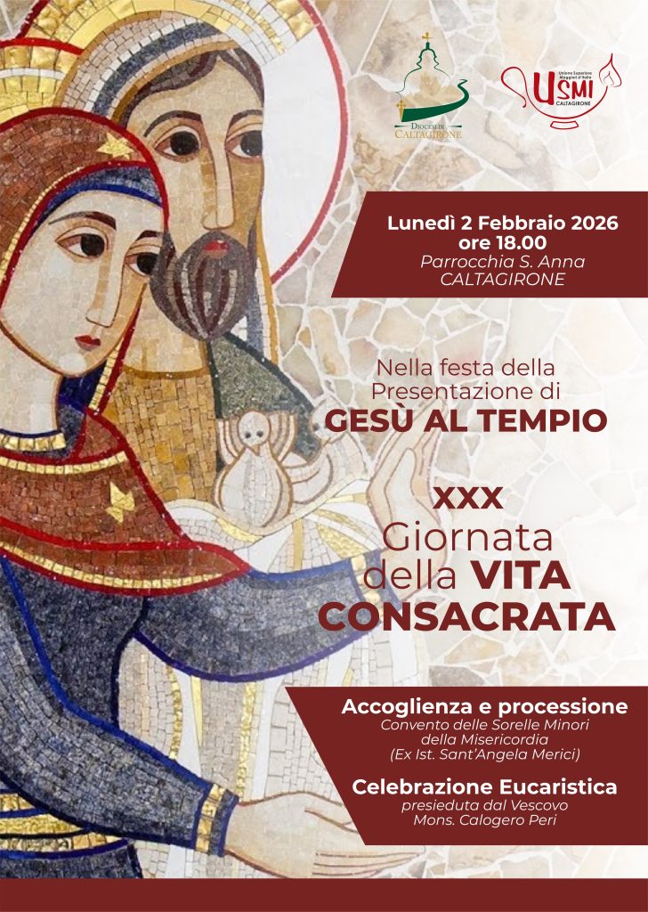 Sotto la presidenza del Vescovo Calogero Peri si è insediato il nuovo Consiglio Presbiterale Diocesano, che ha proceduto all’elezione del Direttivo e del Segretario.Sotto la presidenza del Vescovo Calogero Peri si è insediato il nuovo Consiglio Presbiterale Diocesano, che ha proceduto all’elezione del Direttivo e del Segretario.8 Gennaio 2026Nomine del VescovoNomine del Vescovo24 Dicembre 2025Lettera del Vescovo per la chiusura del GiubileoLettera del Vescovo per la chiusura del Giubileo13 Dicembre 2025 L’insegnamento della religione cattolica: laboratorio di cultura e dialogo Pubblichiamo la Nota Pastorale “L’insegnamento della religione cattolica: laboratorio di cultura e dialogo”, approvata dall’81ª… Mandato ai Ministri Straordinari della Comunione – lettera del Direttore Prot. 1/ULD/2026 Ai Rev.di: Parroci Superiori di Comunità religiose… “Puer natus”, presentato a Mineo, dopo il restauro, il frammento di un Messale Gallicano del XII secolo. Si è svolta sabato 20 dicembre, presso la chiesa di Santa Agrippina a Mineo, la… Caltagirone celebra i 100(+2) anni di Scoutismo Caltagirone celebra i 100(+2) anni di Scoutismo Il 14 dicembre l’evento… Comunicazioni per il Laboratorio Giovani, Musica e Liturgia https://www.diocesidicaltagirone.it/wp-content/uploads/sites/2/2025/12/04/Prot.-PG-5-2025-Laboratorio-GIOVANI-MUSICA-LITURGIA-2025.pdf Prot. PG… Giubileo dei Detenuti – Lettera di presentazione https://www.diocesidicaltagirone.it/wp-content/uploads/sites/2/2025/12/02/Giubileo-Detenuti-2025.pdf… archivio newsJavascript Tab Notizie dalle Parrocchie Notizie dagli Uffici Notizie dalle Aggregazioni Laicali “Puer natus”, presentato a Mineo, dopo il restauro, il frammento di un Messale Gallicano del XII secolo. Mineo recupera la chiesa di Sant’Agrippina. Restaurati gli affreschi di Sebastiano Monaco Memoria Agrippinae Martyris: i luoghi, le reliquie e il culto della Patrona di Mineo fra archeologia e agiografia Mineo in festa per la riapertura della chiesa di S. Agrippina Verso il Giubileo: torna la festa di San Domenico Savio a Scordia L’insegnamento della religione cattolica: laboratorio di cultura e dialogo Mandato ai Ministri Straordinari della Comunione – lettera del Direttore Comunicazioni per il Laboratorio Giovani, Musica e Liturgia Giubileo dei Detenuti – Lettera di presentazione GMG diocesana 2025 Rosario per la pace in comunione con Papa Leone XIV e ricordando l’apertura del Concilio Vaticano II – 11 ottobre Nell’anno giubilare, una Randonnèe e una Ciclopedalata incentrate sulla condivisione del viaggio, alla scoperta dei luoghi e delle amicizie A Caltagirone il Giubileo Diocesano dei malati, delle persone con disabilità e del mondo sanitario Giubileo Giovani e Sport Messaggio del Vescovo ai Maturandi Caltagirone celebra i 100(+2) anni di Scoutismo La Diocesi Calatina celebra il Corpus Domini e il Giubileo delle Aggregazioni Laicali e delle Confraternite. L’Azione Cattolica “entra in azione” per la Festa della Pace Cammino Diocesano delle Confraternite Dieci anni di Serra in Diocesi III Cammino Regionale delle Confraternite di Sicilia Una ceramica calatina per papa Francesco. L’Azione Cattolica Diocesana celebra l’annuale Festa dell’Adesione ai piedi di Maria La Diocesi di Caltagirone e il Centro di Aiuto alla vita riflettono su Libertà e Vita. Il Vescovo Peri riconferma Concetta Antenucci Presidente diocesana dell’Azione Cattolica Link Utili PHOTOGALLERY Chiusura Diocesana del Giubileo della Speranza XL GMG in Diocesi VIDEO Questo contenuto non è disponibile per via delle tue preferenze sui cookieQuesto contenuto non è disponibile per via delle tue preferenze sui cookie Prossimi eventiXXX Giornata della Vita ConsacrataLavorare bene, lavorare per amoreAttualità e Attuabilità dei 12 punti programmatici di don Luigi SturzoCorso di formazione all’impegno politico e sociale48^ Giornata Nazionale per la VitaMandato ai Ministri Straordinari della ComunioneChiusura del Giubileo DiocesanoGiovani Musica e LiturgiaGiubileo diocesano dei DetenutiGiornata Mondiale della Gioventù in Diocesi