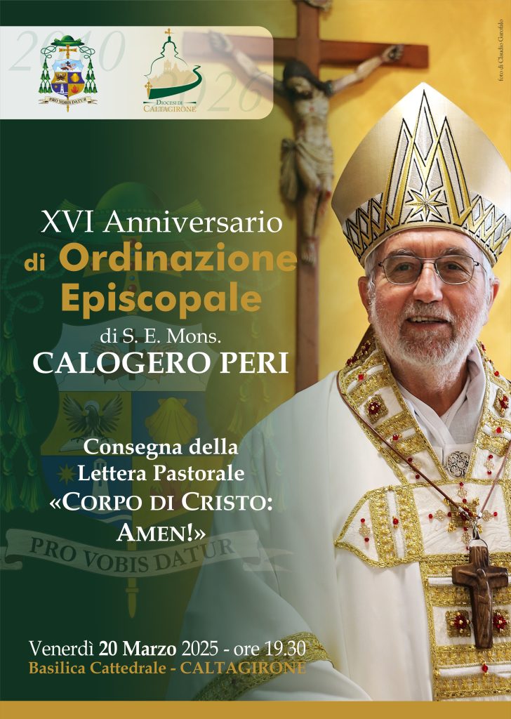 XVI Anniversario Ordinazione Episcopale del VescovoXVI Anniversario Ordinazione Episcopale del Vescovo5 Marzo 2026Nomine del VescovoNomine del Vescovo21 Febbraio 2026Presentazione del nuovo volume di mons. Calogero Peri dedicato al percorso iconografico della Cappella dell’Episcopio.Presentazione del nuovo volume di mons. Calogero Peri dedicato al percorso iconografico della Cappella dell’Episcopio.19 Febbraio 2026 Solidarietà a Mons. Corrado Lorefice Condividiamo la Lettera della Consulta Regionale e Diocesana delle Aggregazioni Laicali che esprime solidarietà al… “Corpo di Cristo: Amen!” La nuova Lettera Pastorale del Vescovo Calogero Peri per la Chiesa di Caltagirone CALTAGIRONE – La Diocesi di Caltagirone annuncia la pubblicazione della nuova Lettera Pastorale del Vescovo… Laboratorio Giovani, Musica e Liturgia 𝐋𝐚𝐛𝐨𝐫𝐚𝐭𝐨𝐫𝐢𝐨 𝐆𝐈𝐎𝐕𝐀𝐍𝐈 | 𝐌𝐔𝐒𝐈𝐂𝐀 | 𝐋𝐈𝐓𝐔𝐑𝐆𝐈𝐀 Continua la formazione con il SECONDO APPUNTAMENTO del… XXXIV Giornata Mondiale del Malato L’11 febbraio, memoria liturgica della Madonna di Lourdes, la Chiesa celebra la Giornata Mondiale del… L’Azione Cattolica Calatina in marcia per la Pace con lo slogan: “Terra in pace: verso una pace disarmata e disarmante!”. Domenica 8 febbraio 2026, la città di Caltagirone ospiterà la Festa della Pace, un appuntamento… L’insegnamento della religione cattolica: laboratorio di cultura e dialogo Pubblichiamo la Nota Pastorale “L’insegnamento della religione cattolica: laboratorio di cultura e dialogo”, approvata dall’81ª… archivio newsJavascript Tab Notizie dalle Parrocchie Notizie dagli Uffici Notizie dalle Aggregazioni Laicali “Puer natus”, presentato a Mineo, dopo il restauro, il frammento di un Messale Gallicano del XII secolo. Mineo recupera la chiesa di Sant’Agrippina. Restaurati gli affreschi di Sebastiano Monaco Memoria Agrippinae Martyris: i luoghi, le reliquie e il culto della Patrona di Mineo fra archeologia e agiografia Mineo in festa per la riapertura della chiesa di S. Agrippina Verso il Giubileo: torna la festa di San Domenico Savio a Scordia Laboratorio Giovani, Musica e Liturgia XXXIV Giornata Mondiale del Malato L’insegnamento della religione cattolica: laboratorio di cultura e dialogo Mandato ai Ministri Straordinari della Comunione – lettera del Direttore Comunicazioni per il Laboratorio Giovani, Musica e Liturgia Giubileo dei Detenuti – Lettera di presentazione GMG diocesana 2025 Rosario per la pace in comunione con Papa Leone XIV e ricordando l’apertura del Concilio Vaticano II – 11 ottobre Nell’anno giubilare, una Randonnèe e una Ciclopedalata incentrate sulla condivisione del viaggio, alla scoperta dei luoghi e delle amicizie A Caltagirone il Giubileo Diocesano dei malati, delle persone con disabilità e del mondo sanitario Solidarietà a Mons. Corrado Lorefice Caltagirone celebra i 100(+2) anni di Scoutismo La Diocesi Calatina celebra il Corpus Domini e il Giubileo delle Aggregazioni Laicali e delle Confraternite. L’Azione Cattolica “entra in azione” per la Festa della Pace Cammino Diocesano delle Confraternite Dieci anni di Serra in Diocesi III Cammino Regionale delle Confraternite di Sicilia Una ceramica calatina per papa Francesco. L’Azione Cattolica Diocesana celebra l’annuale Festa dell’Adesione ai piedi di Maria La Diocesi di Caltagirone e il Centro di Aiuto alla vita riflettono su Libertà e Vita. Link Utili PHOTOGALLERY Ritiro Giovanissimi e Giovani – Raddusa, 1 marzo 2026 Chiusura Diocesana del Giubileo della Speranza VIDEO Questo contenuto non è disponibile per via delle tue preferenze sui cookieQuesto contenuto non è disponibile per via delle tue preferenze sui cookie Prossimi eventiXVI Anniversario di Consacrazione Episcopale del vescovoCappella Musicale in ConcertoFormazione IdRCReferendum sulla giustiziaRitiro di Quaresima per Giovani e GiovanissimiFesta degli InnamoratiPresentazione Libro Vescovo𝐋𝐚𝐛𝐨𝐫𝐚𝐭𝐨𝐫𝐢𝐨 𝐆𝐈𝐎𝐕𝐀𝐍𝐈 | 𝐌𝐔𝐒𝐈𝐂𝐀 | 𝐋𝐈𝐓𝐔𝐑𝐆𝐈𝐀XXXIV Giornata Mondiale del MalatoFesta della Pace