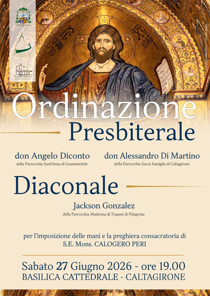 Messaggio del Vescovo per la Giornata del SeminarioMessaggio del Vescovo per la Giornata del Seminario17 Aprile 2026Nomine del VescovoNomine del Vescovo15 Aprile 2026Nomina del VescovoNomina del Vescovo2 Aprile 2026 Indicazioni Liturgiche per la Settimana Santa https://www.diocesidicaltagirone.it/wp-content/uploads/sites/2/2026/03/30/ULD-Settimana-Santa-2026.pdf ULD - Settimana Santa 2026… Disposizioni Aggiornamento Elenchi B-C_2026-2027 Si comunica che è possibile presentare le domande di aggiornamento e/o inserimento negli Elenchi B-C… La Chiesa di Caltagirone si ritrova in Cattedrale per rendere grazie a Dio per i sedici anni di ministero episcopale di Mons. Peri. CALTAGIRONE – La Chiesa di Caltagirone si ritrova in Cattedrale per rendere grazie a Dio per… Insediamento canonico di don Salvatore Gallo come nuovo parroco della Parrocchia di San Giacomo a Caltagirone Caltagirone – Giovedì 19 marzo alle ore 19.30, in occasione della festa di San Giuseppe,… XVI Anniversario Ordinazione Episcopale del Vescovo Prot. 1/26 Ai rev. Presbiteri, Diaconi, Religiosi e Religiose, alle… Solidarietà a Mons. Corrado Lorefice Condividiamo la Lettera della Consulta Regionale e Diocesana delle Aggregazioni Laicali che esprime solidarietà al… archivio newsJavascript Tab Notizie dalle Parrocchie Notizie dagli Uffici Notizie dalle Aggregazioni Laicali Insediamento canonico di don Salvatore Gallo come nuovo parroco della Parrocchia di San Giacomo a Caltagirone “Puer natus”, presentato a Mineo, dopo il restauro, il frammento di un Messale Gallicano del XII secolo. Mineo recupera la chiesa di Sant’Agrippina. Restaurati gli affreschi di Sebastiano Monaco Memoria Agrippinae Martyris: i luoghi, le reliquie e il culto della Patrona di Mineo fra archeologia e agiografia Mineo in festa per la riapertura della chiesa di S. Agrippina Indicazioni Liturgiche per la Settimana Santa Disposizioni Aggiornamento Elenchi B-C_2026-2027 Laboratorio Giovani, Musica e Liturgia XXXIV Giornata Mondiale del Malato L’insegnamento della religione cattolica: laboratorio di cultura e dialogo Mandato ai Ministri Straordinari della Comunione – lettera del Direttore Comunicazioni per il Laboratorio Giovani, Musica e Liturgia Giubileo dei Detenuti – Lettera di presentazione GMG diocesana 2025 Rosario per la pace in comunione con Papa Leone XIV e ricordando l’apertura del Concilio Vaticano II – 11 ottobre Solidarietà a Mons. Corrado Lorefice Caltagirone celebra i 100(+2) anni di Scoutismo La Diocesi Calatina celebra il Corpus Domini e il Giubileo delle Aggregazioni Laicali e delle Confraternite. L’Azione Cattolica “entra in azione” per la Festa della Pace Cammino Diocesano delle Confraternite Dieci anni di Serra in Diocesi III Cammino Regionale delle Confraternite di Sicilia Una ceramica calatina per papa Francesco. L’Azione Cattolica Diocesana celebra l’annuale Festa dell’Adesione ai piedi di Maria La Diocesi di Caltagirone e il Centro di Aiuto alla vita riflettono su Libertà e Vita. Link Utili PHOTOGALLERY XVI Anniversario di Ordinazione Episcopale di Mons. Calogero Peri Ritiro Giovanissimi e Giovani – Raddusa, 1 marzo 2026 VIDEO Questo contenuto non è disponibile per via delle tue preferenze sui cookieQuesto contenuto non è disponibile per via delle tue preferenze sui cookie Prossimi eventiVeglia Diocesana VocazionaleGiornata del SeminarioCammino Diocesano delle ConfraterniteMessa del CrismaPresentazione nuova Via CrucisInizio Ministero di Parroco di don Salvatore GalloXVI Anniversario di Consacrazione Episcopale del vescovoCappella Musicale in ConcertoFormazione IdRCReferendum sulla giustizia
