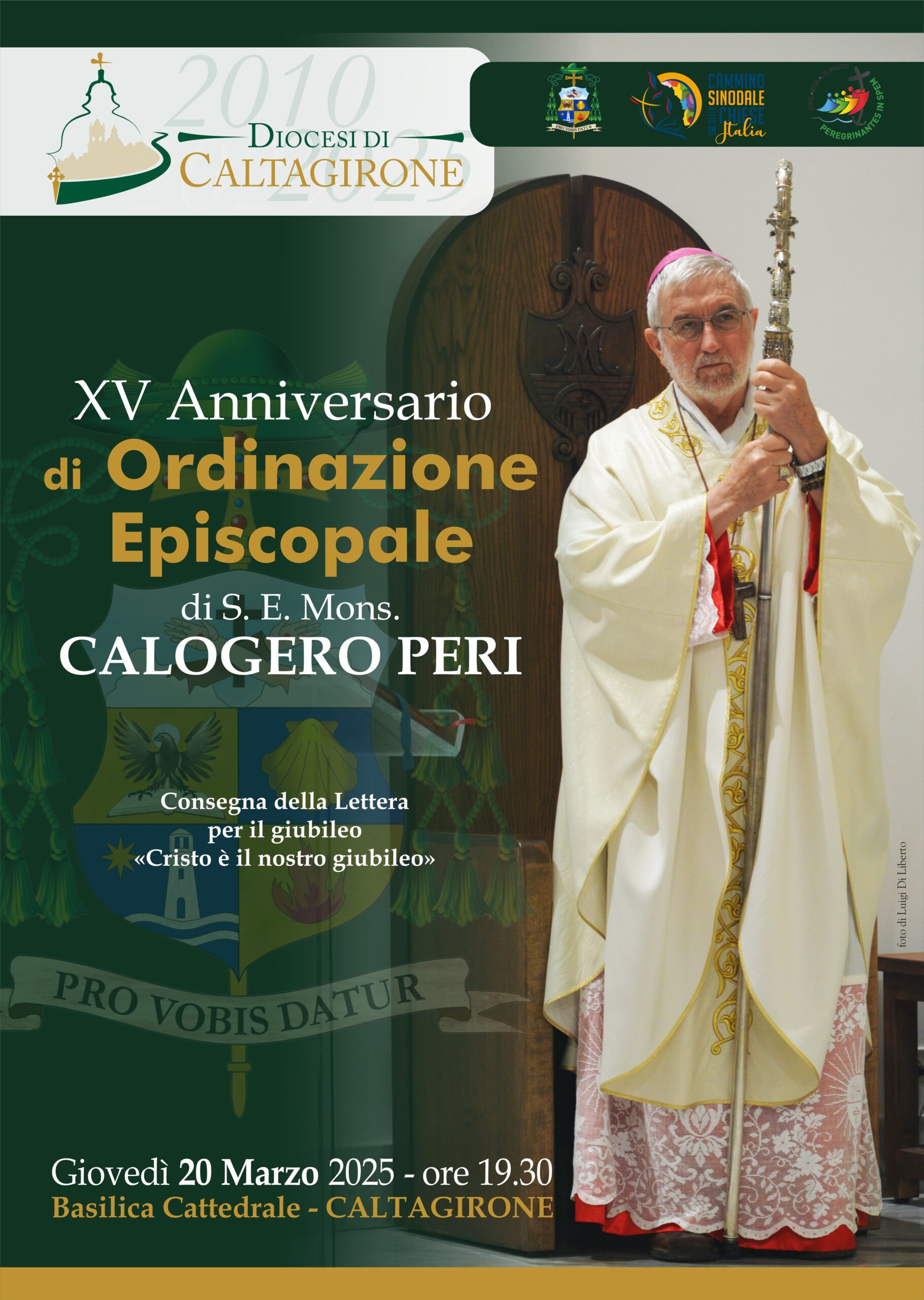 CALTAGIRONE – Con profonda gioia e riconoscenza, la nostra comunità diocesana si prepara a vivere un momento di grande significato per la Chiesa di Caltagirone. Giovedì 20 marzo 2025, alle ore 19:30, siamo tutti invitati a riunirci nella Cattedrale di Caltagirone per la solenne Celebrazione Eucaristica che segnerà il XV Anniversario di Ordinazione Episcopale di S.E. Mons. Calogero Peri.