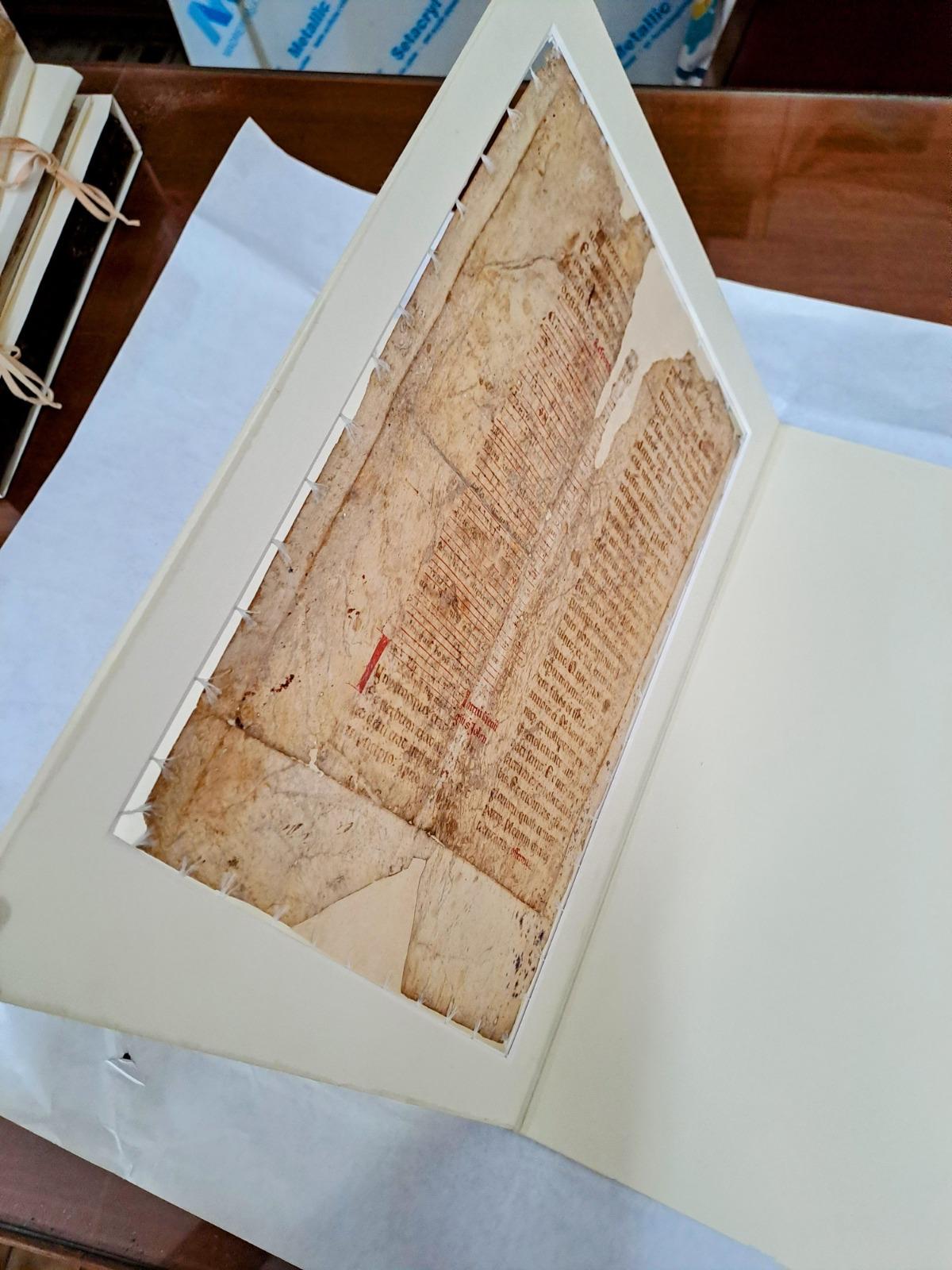 La preziosa pergamena medievale era stata reimpiegata come copertina di un quaderno di conti del 1592, appartenuto a don Girolamo Ballirò, decano del capitolo della cattedrale di Siracusa e rettore di Santa Agrippina tra la seconda metà del XVI secolo e i primi anni del XVII secolo.